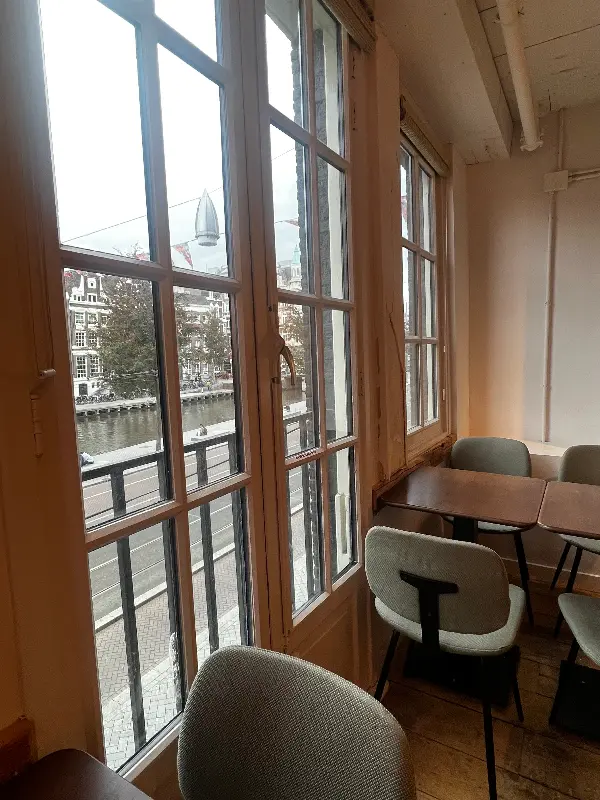 창밖으로 보이는 암스테르담의 아름다운 풍경은 식사를 더욱 즐겁게 만들어줍니다.