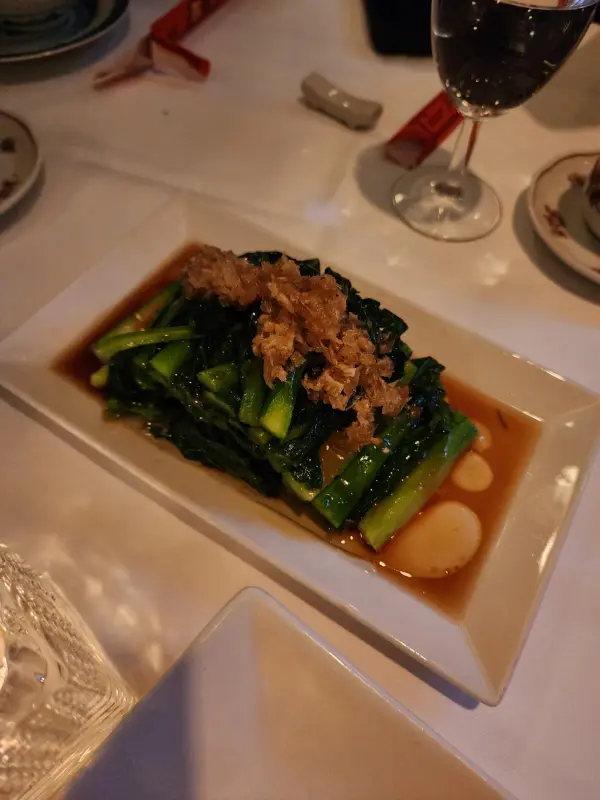북경 오리의 감동이 채 가시기도 전에, 셰프의 솜씨가 돋보이는 채소볶음이 테이블에 놓였다. 신선한 채소들을 센 불에서 빠르게 볶아낸 이 요리는, 볶음 정도와 간이 완벽하게 조화를 이루었다. 아삭아삭 씹히는 채소의 식감과 은은하게 퍼지는 불맛은, 젓가락을 멈출 수 없게 만드는 마성의 매력을 지니고 있었다. 사진에서 보이는 윤기있는 모습은 신선한 재료와 셰프의 노련한 솜씨를 짐작하게 한다.