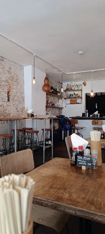 높은 테이블과 의자가 인상적인 이곳은 일반적인 라멘집과는 조금 다른 분위기를 풍긴다. 벽돌 벽과 나무 테이블의 조화는 편안하면서도 세련된 느낌을 준다. 혼자 온 손님도 부담 없이 즐길 수 있는 바 좌석도 마련되어 있다. 암스테르담의 자유로운 분위기가 고스란히 느껴지는 공간이다.