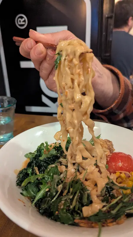 키친 임파서블의 가장 큰 매력은 단연 비건 라멘이다. ‘비건’이라는 단어에서 느껴지는 밋밋함이나 부족함은 이곳에서는 찾아볼 수 없다. 오히려 신선한 재료와 깊은 풍미, 정성 가득한 조리법으로 비건 라멘의 새로운 지평을 열었다는 평가가 주를 이룬다. 특히, Wheat Pray Love와의 협업을 통해 개발한 세이탄 요리는 많은 이들의 입맛을 사로잡았다. 세이탄 스틱을 맛본 한 방문객은 “키친 임파서블은 Wheat Pray Love와 협업해서 세이탄을 요리에 사용했는데 정말 최고였어요! 나중에 세이탄 스틱을 사서 영국으로…”라며 극찬을 아끼지 않았다.