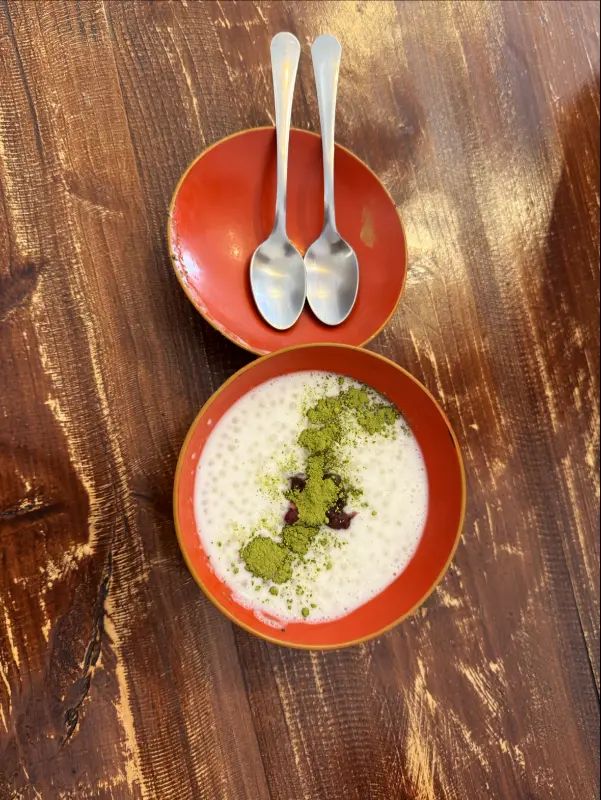 동글동글한 타피오카는 쫀득한 식감이 재미있고, 은은한 단맛이 기분 좋게 느껴집니다. 팥과 녹차가루가 뿌려진 모찌는 부드럽고 달콤합니다. 숟가락으로 살짝 떠서 한 입에 넣으니, 입안에서 사르르 녹아내립니다.
