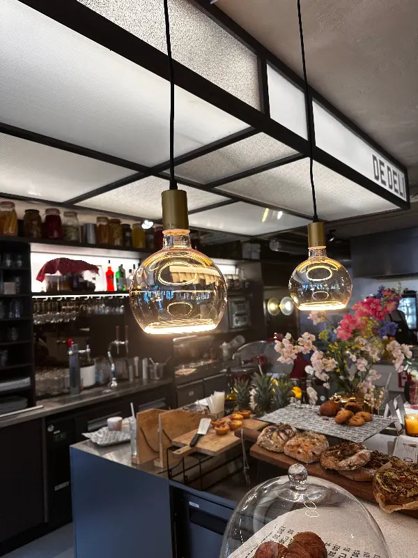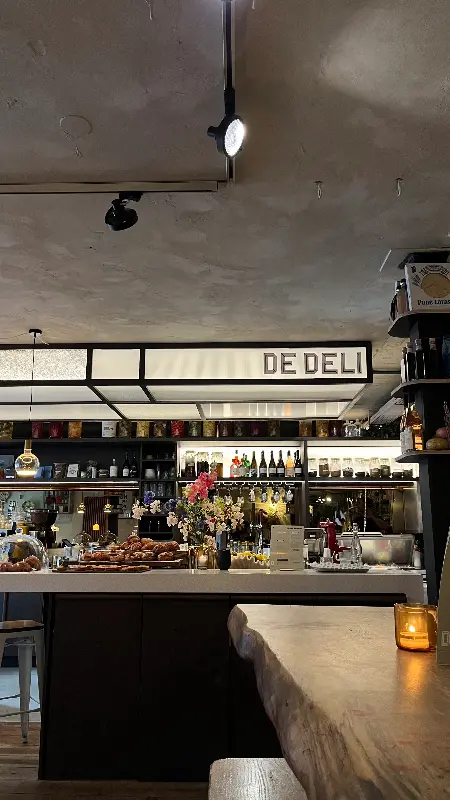 De Deli의 아늑하고 감각적인 인테리어는 편안한 식사를 위한 완벽한 배경을 제공합니다.