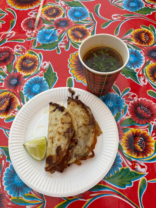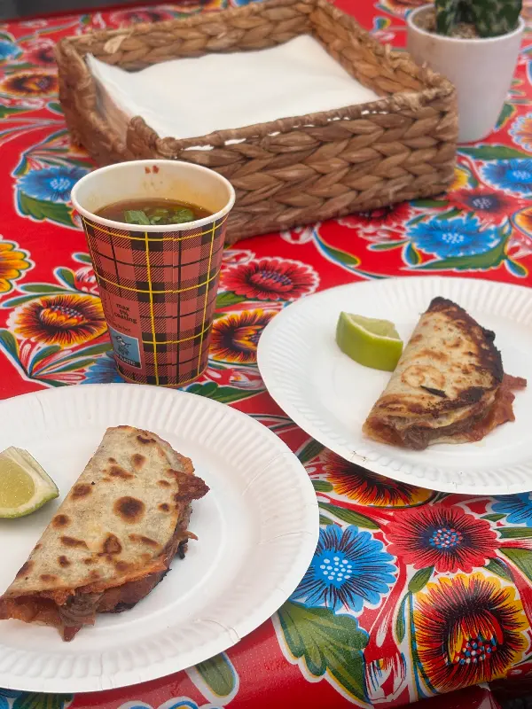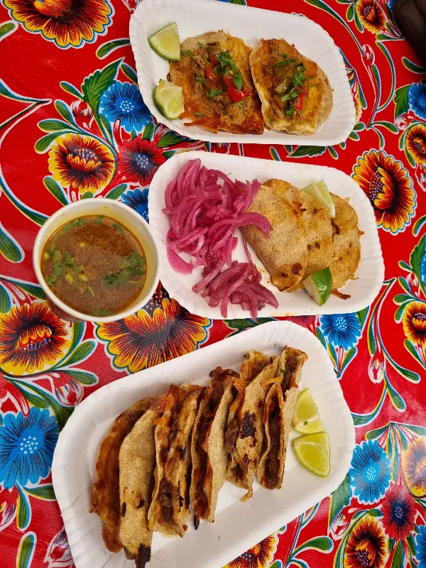 주문한 비리아 타코가 나오자마자, 그 비주얼에 감탄했다. 노릇하게 구워진 또르티야 안에는 잘게 찢은 소고기가 가득 들어 있었고, 그 위에는 신선한 고수와 양파가 듬뿍 올려져 있었다. 타코 옆에는 라임 한 조각이 놓여 있었는데, 라임을 살짝 짜서 타코에 뿌린 후 한 입 베어 물었다.