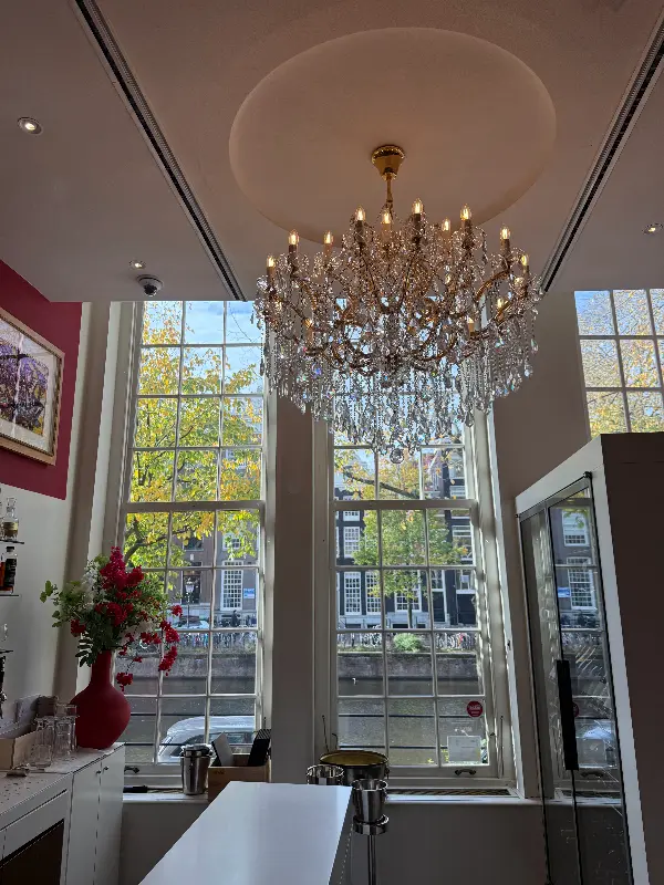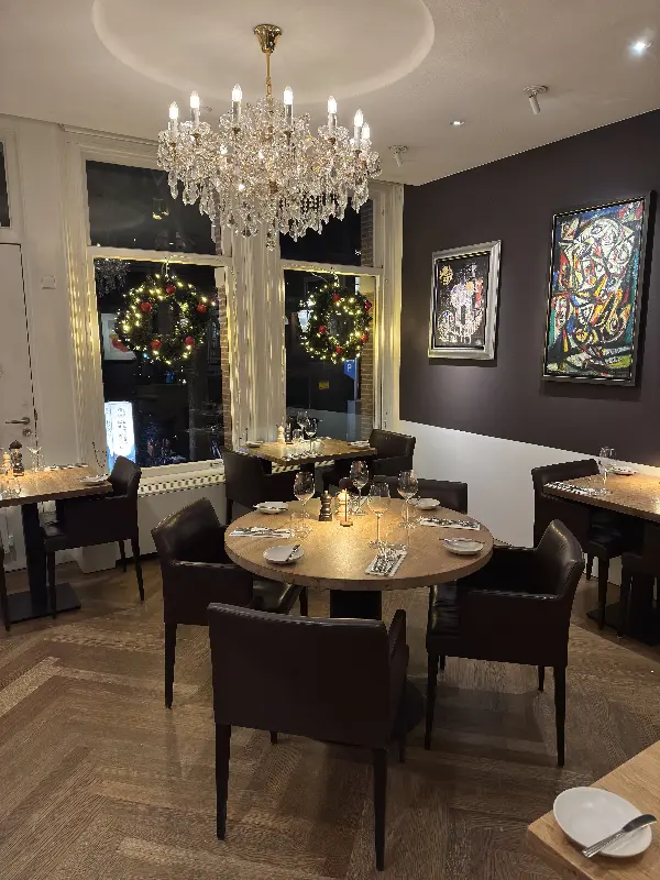 레스토랑 내부는 깔끔하면서도 세련된 분위기로 꾸며져 있었는데, 모던한 감각이 돋보이는 인테리어는 물론, 은은하게 빛나는 샹들리에가 공간에 우아함을 더했습니다. 창밖으로 보이는 암스테르담의 풍경은 낭만적인 분위기를 한층 고조시켰습니다. 특히 결혼 기념일을 축하하기 위해 방문했던 한 고객은 완벽한 경험이었다며 극찬을 아끼지 않았습니다. 기념일 뿐만 아니라 특별한 날을 더욱 특별하게 만들어 줄 완벽한 장소라는 생각이 들었습니다.