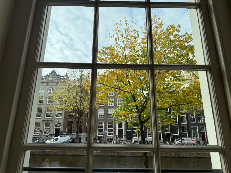 창밖으로 펼쳐지는 암스테르담의 아름다운 가을 풍경, 눈으로도 즐기는 미식 경험.