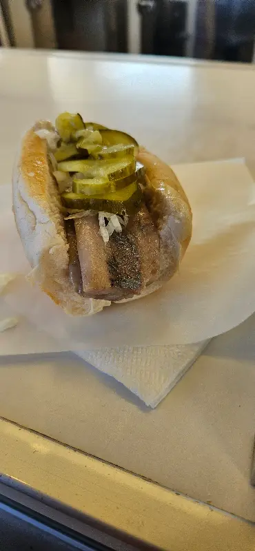 함께 제공된 피클과 양파는 청어의 풍미를 더욱 깊게 만들어주었습니다. 아삭한 피클의 식감과 알싸한 양파의 맛이 청어와 완벽하게 어우러져 환상적인 맛을 선사했습니다. 마치 연어 샌드위치를 먹는 듯한 느낌이었지만, 훨씬 더 부드럽고 풍부한 맛이었습니다.
