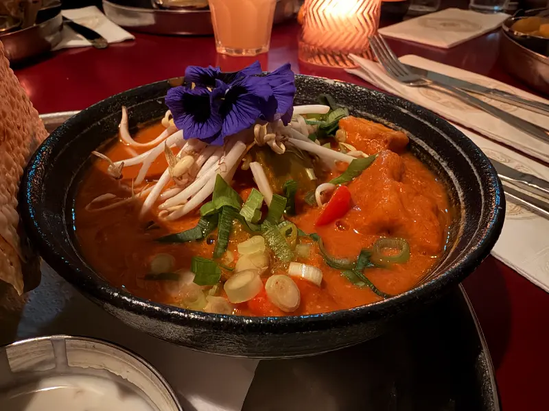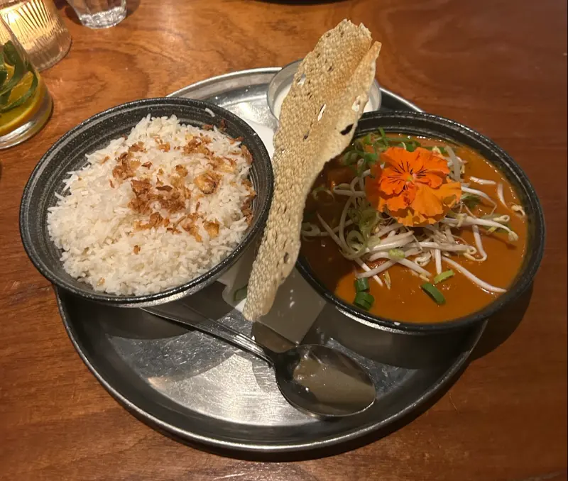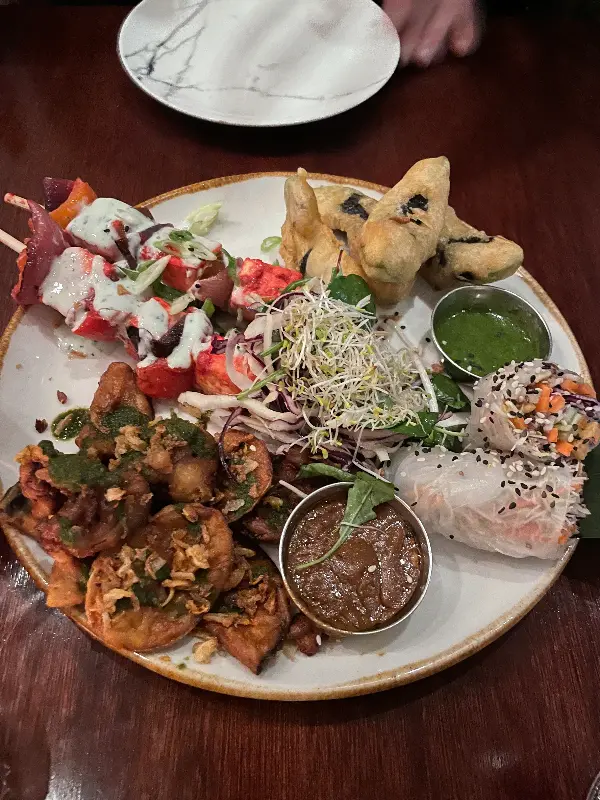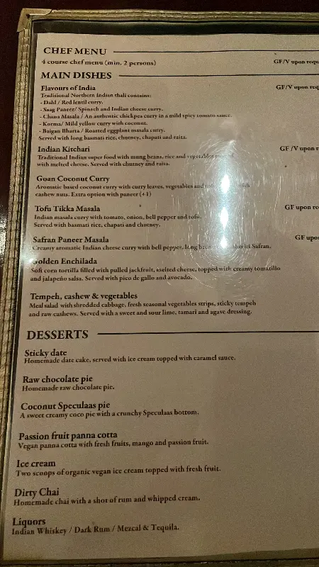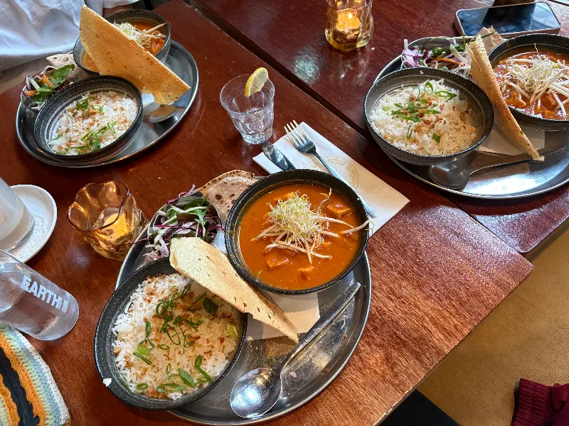 우리는 셰프가 직접 만든 4코스 비건 메뉴를 주문했습니다. 섬세하게 조리된 요리들은 적당한 속도로 제공되었고, 정통 인도 음식의 풍미를 그대로 느낄 수 있었습니다. 특히 칠리 버섯과 파니르 마살라/두부 마살라는 잊을 수 없는 맛이었습니다. 영국에서 맛보던 인도 음식과는 또 다른 매력이 있었습니다.