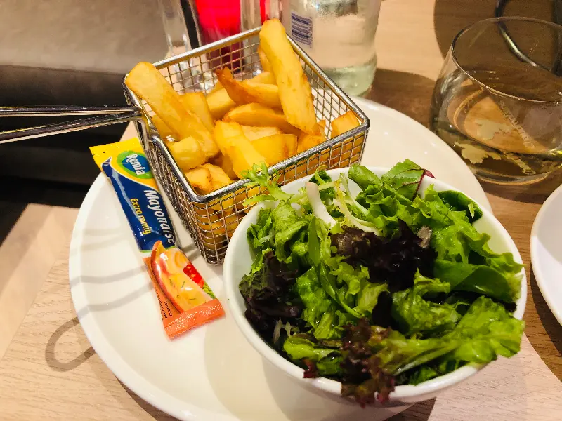 곁들임 메뉴의 조화, 감자튀김과 샐러드의 신선함