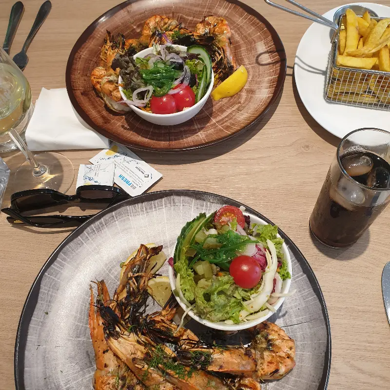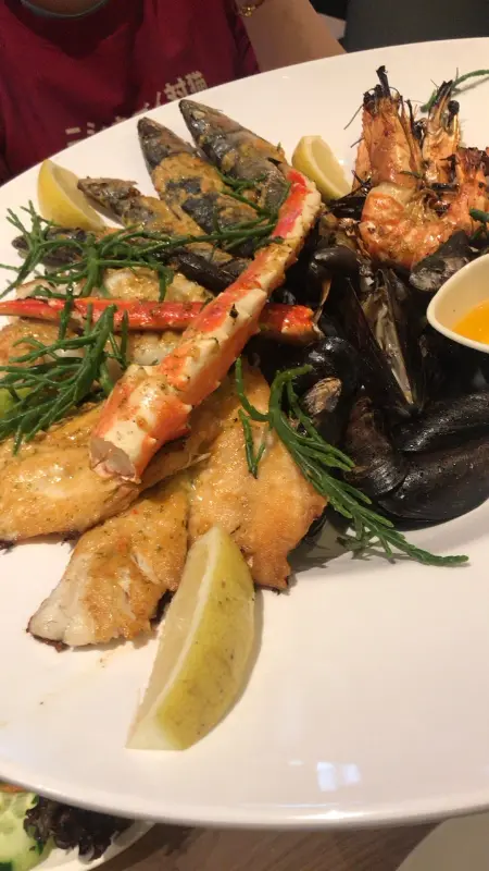 메뉴를 펼쳐 들고 고민할 필요도 없이, 우리의 선택은 단 하나, ‘킹 플래터’였다. 다양한 해산물을 한 번에 맛볼 수 있다는 점이 매력적이었다. 주문 후 얼마 지나지 않아, 거대한 접시 위에 푸짐하게 담긴 킹 플래터가 등장했다. 갓 구워진 생선, 탐스러운 게 다리, 윤기가 흐르는 홍합, 그리고 신선한 해초까지, 보기만 해도 군침이 돌았다.