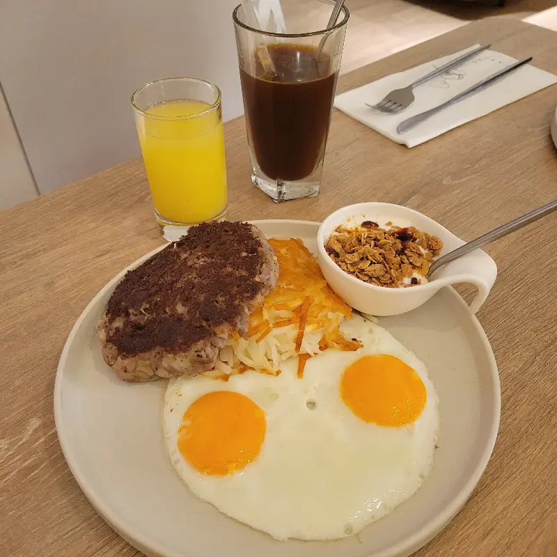 M One Café의 음식은 재료의 신선함이 느껴졌고, 양념도 과하지 않아 음식 본연의 맛을 잘 살렸습니다. 특히 닭다리살 브런치는 정말 훌륭했습니다. 짭짤하면서도 달콤한 닭다리살은 빵과 채소와 함께 먹으니 더욱 맛있었습니다.