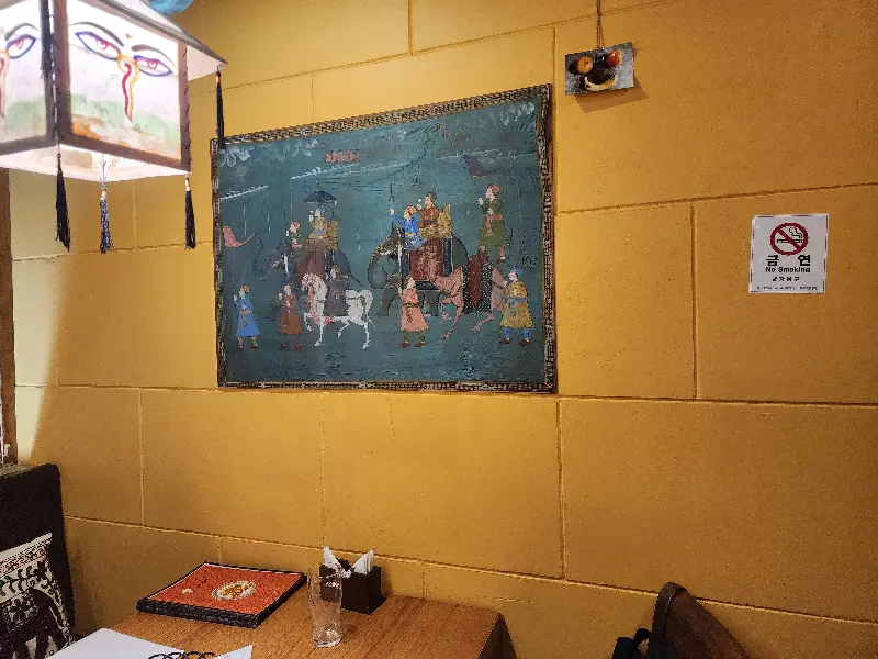문을 열고 들어서자, 마치 인도에 온 듯한 착각을 불러일으키는 이국적인 인테리어가 눈에 들어왔다. 은은한 조명 아래 펼쳐진 다채로운 색감의 벽화와 소품들은 인도 현지의 분위기를 고스란히 담아내고 있었다.