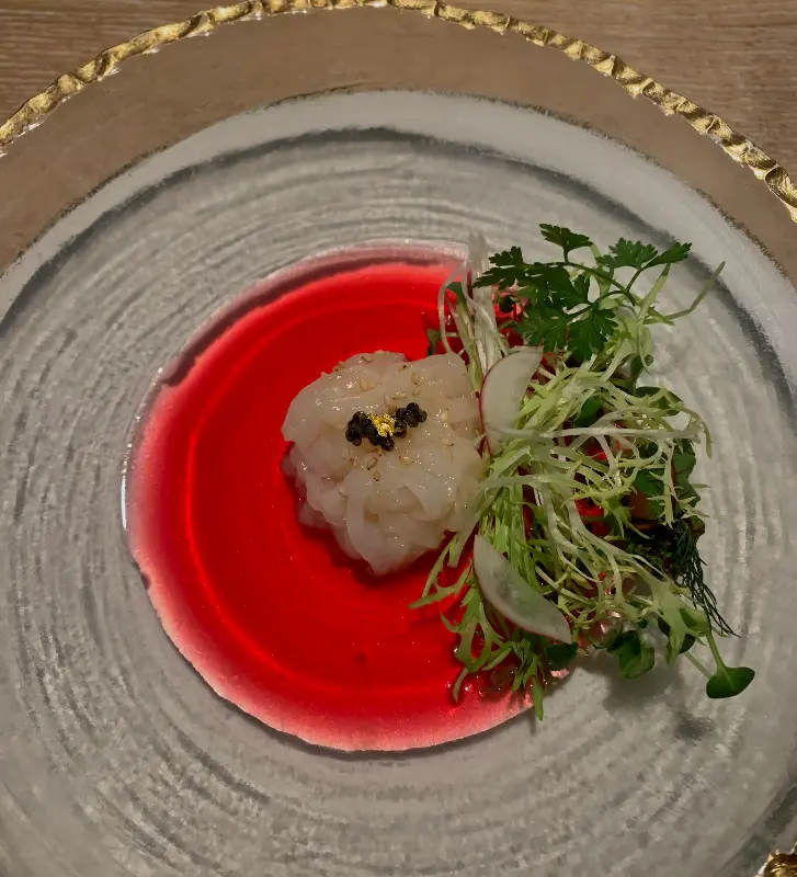 붉은색 소스 위에 놓인 신선한 전복과 초록색 채소들의 조화는 시각적으로도 훌륭했다. 섬세하게 손질된 재료들은 입안에서 다채로운 풍미를 선사하며 미각을 자극했다. 한 입 맛보는 순간, 신선한 재료 본연의 맛과 셰프의 정성이 느껴졌다.