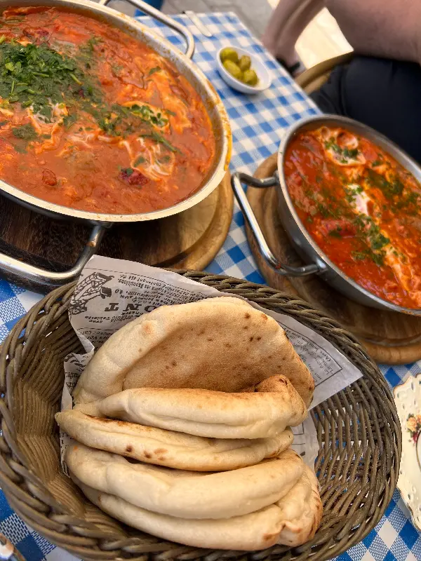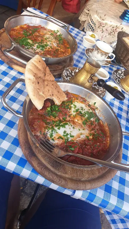 이곳의 대표 메뉴는 단연 샤크슈카. 토마토 소스에 계란을 톡 깨 넣어 만든 이 요리는, 보기만 해도 군침이 돈다. 뜨겁게 달궈진 팬에 담겨 나온 샤크슈카는, 신선한 토마토 향과 고소한 계란 냄새가 어우러져 식욕을 자극한다. 첫 입을 입에 넣는 순간, 입 안 가득 퍼지는 풍부한 맛은 감탄을 자아낸다. 토마토의 상큼함, 계란의 부드러움, 그리고 향신료의 은은한 조화가 완벽하게 어우러져 잊을 수 없는 맛을 선사한다.