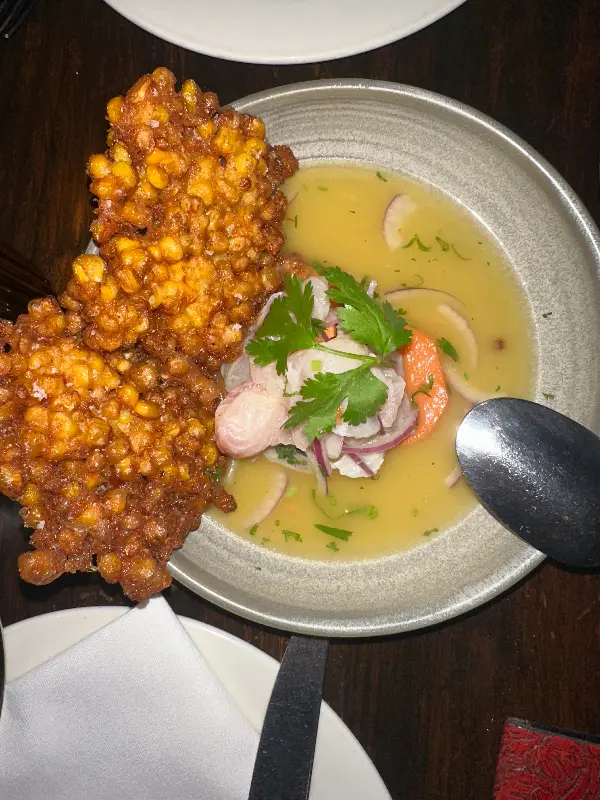 식사의 시작은 패밀리 스타일로 제공되는 에피타이저였습니다. 치킨 엠파나다와 판 데 케소를 주문했는데, 아름다운 플레이팅은 물론 맛 또한 훌륭했습니다. 특히 엠파나다는 겉은 바삭하고 속은 촉촉한 완벽한 조화를 이루며 입맛을 돋우었습니다. 곁들여 나오는 다채로운 소스는 각각의 풍미를 더하며 엠파나다의 맛을 한층 끌어올렸습니다. 채식 엠파나다 또한 훌륭한 선택이 될 수 있습니다.