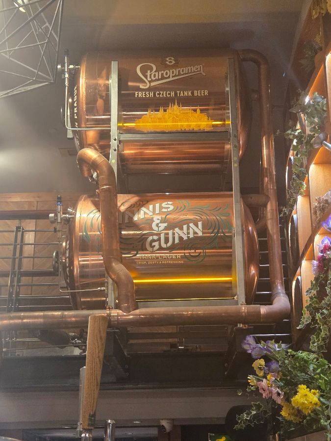 다양한 종류의 맥주와 사이다는 물론, 칵테일까지 갖추고 있어 취향에 따라 음료를 선택할 수 있다는 점도 좋았습니다. 특히, 사진에서 보이는 것처럼 거대한 맥주 탱크는 신선한 맥주를 바로 맛볼 수 있다는 기대감을 불러일으켰습니다.