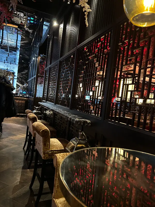 Tattu Edinburgh에 첫 발을 내딛는 순간, 감탄사가 절로 터져 나왔습니다. 어둡고 은은한 조명 아래 붉은색과 검은색이 조화롭게 어우러진 인테리어는 동양적인 신비로움과 서양의 세련됨이 공존하는 듯한 인상을 주었습니다. 천장에는 섬세하게 장식된 벚꽃나무 가지가 드리워져 있었고, 벽면에는 화려한 그림들이 걸려 있어 마치 예술 작품 속에 들어온 듯한 느낌을 받았습니다.