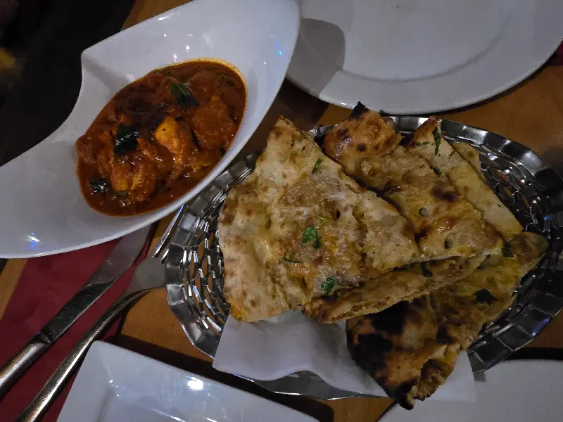 특히, 갓 구운 난에 커리를 듬뿍 찍어 먹으면 그 맛은 더욱 환상적이다. 겉은 바삭하고 속은 쫄깃한 난은 커리의 풍미를 더욱 깊게 만들어준다. 갈릭 난을 선택하면 은은한 마늘 향이 더해져 더욱 풍성한 맛을 즐길 수 있다.
