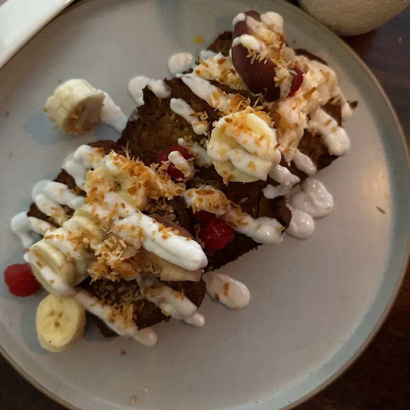 풀 스코티쉬와 차이라떼로 든든하게 배를 채웠지만, 달콤한 디저트가 빠질 수 없었다. 바나나 브레드는 촉촉하고 부드러운 식감에 은은한 바나나 향이 더해져, 완벽한 마무리를 선사했다. 커피와 함께 즐기니 더욱 맛있었다.