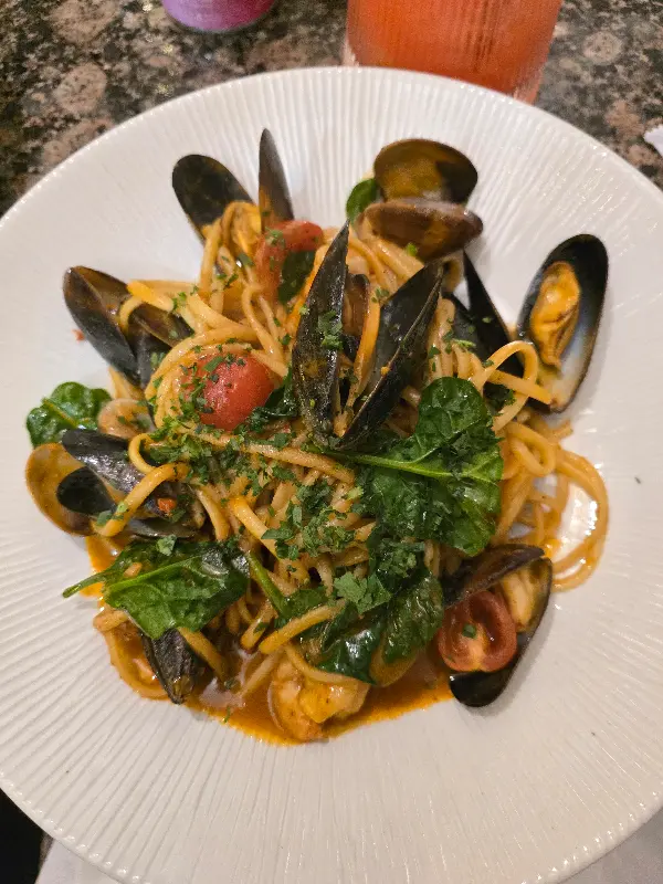 다음으로 맛본 해산물 링귀니는 정말 ‘세상에서 먹어본 최고의 해산물 링귀니’라는 극찬이 아깝지 않았다. 면은 탱글탱글했고, 해산물은 신선하고 쫄깃했다. 특히 소스가 예술이었다. 허브 향이 은은하게 퍼지면서 진한 마늘 버터의 풍미가 느껴졌다. 해산물과 면, 그리고 소스의 완벽한 조화였다.