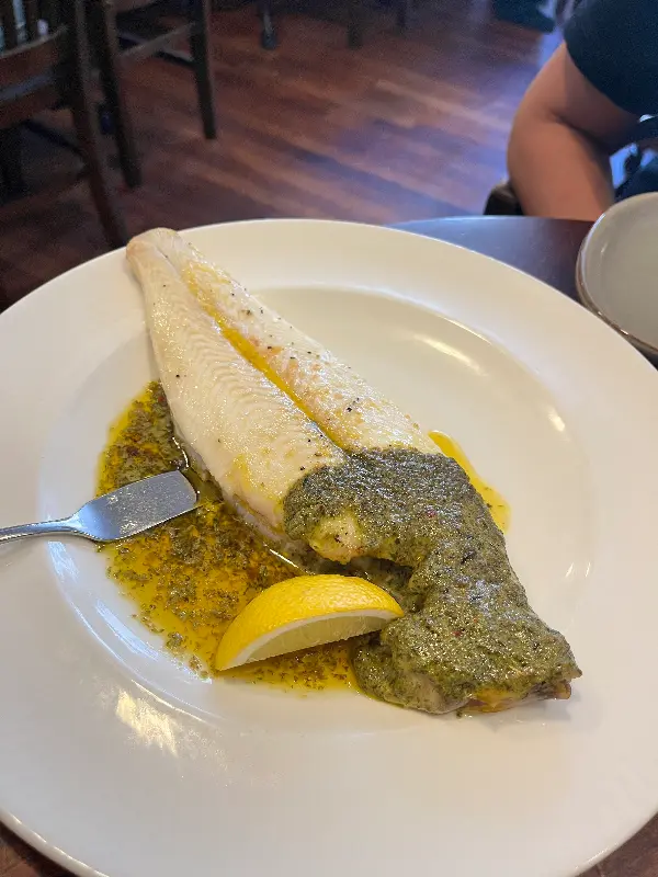 주문한 광어 요리 또한 만족스러웠다. 신선한 광어의 풍미를 제대로 느낄 수 있었다. 다만 함께 나온 감자튀김이 바삭하지 않았던 점은 아쉬웠다. 하지만 전반적으로 음식이 정말 맛있어서 충분히 만족스러웠다.