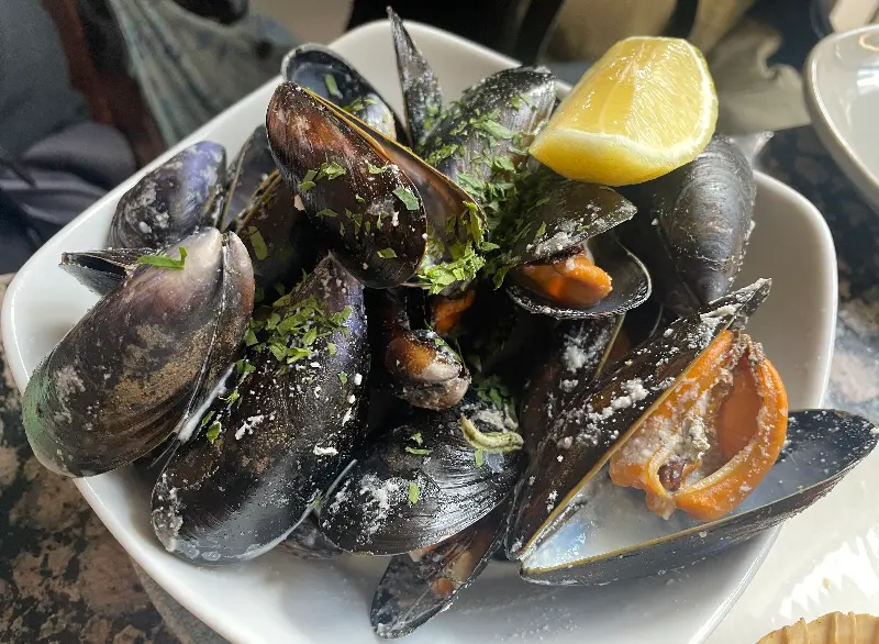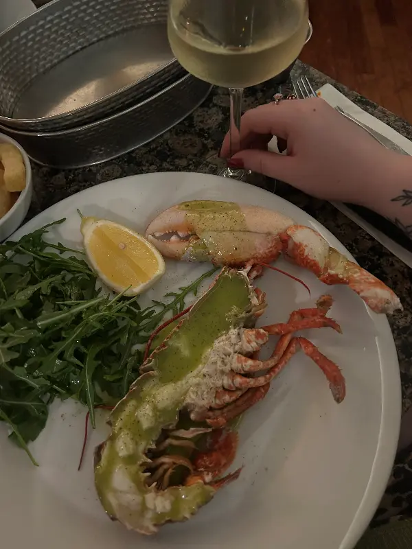마지막으로 랍스터와 랑구스틴을 맛보았다. 갓 잡아 올린 듯 신선함이 느껴졌다. 랍스터는 살이 꽉 차 있었고, 랑구스틴은 쫄깃한 식감이 일품이었다. 특히, 직접 채취한 가리비는 신선하고 달콤했다. 해산물은 즙이 많고 촉촉했으며, 허브 향이 풍부하고 진한 마늘 버터 소스에 듬뿍 담겨 있었다. 입안에서 살살 녹는 듯한 달콤함이 잊혀지지 않는다.