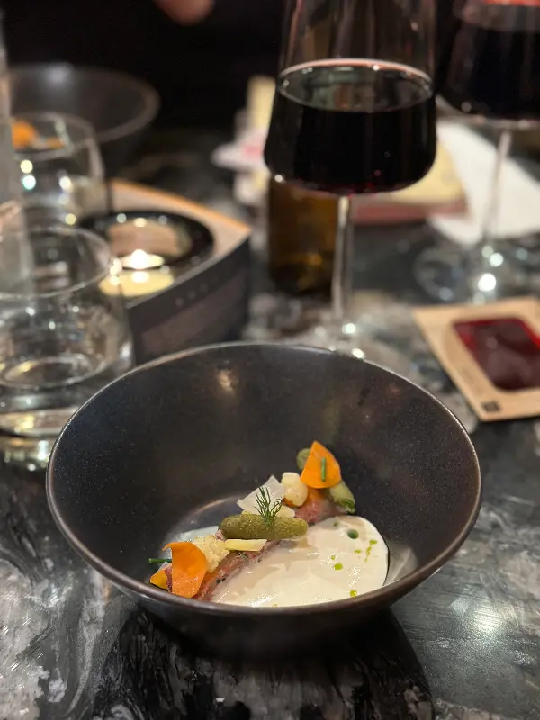 음식과 함께 곁들인 와인 페어링 또한 훌륭했습니다. 각 코스 요리의 풍미를 더욱 돋보이게 해주는 와인들은 식사의 만족도를 높여주었습니다. 웨이트리스 아나(Ana)는 각 와인에 대한 자세한 설명과 함께 음식과의 조화를 친절하게 안내해주어 더욱 즐거운 식사를 즐길 수 있었습니다.
