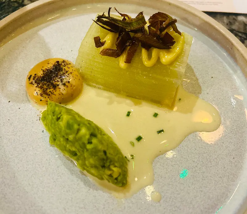 ‘로스트 인 파리’ 테마 메뉴는 정말 환상적이었습니다. 각 코스마다 파리의 다양한 매력을 담아낸 요리들은 눈과 입을 즐겁게 했습니다. 특히, 제 입맛을 사로잡았던 것은 바로 대파 요리였습니다. 은은한 단맛과 부드러운 식감이 일품이었던 대파 요리는 글루텐 프리로 특별히 준비되어 더욱 감동적이었습니다. 마치 파리의 작은 레스토랑에서 맛보는 듯한 정통 프랑스 요리의 풍미를 느낄 수 있었습니다.