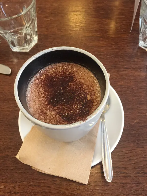 음료로는 핫초코와 플랫 화이트를 주문했습니다. 핫초코는 조금 밍밍하다는 평이 있었지만, 플랫 화이트는 부드럽고 고소한 맛이 일품이었습니다. 특히 Full Scottish Breakfast의 짭짤한 맛을 플랫 화이트가 부드럽게 감싸주어 완벽한 조화를 이루었습니다.
