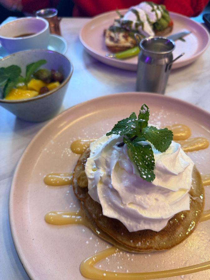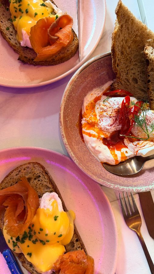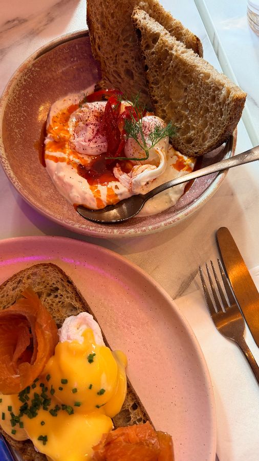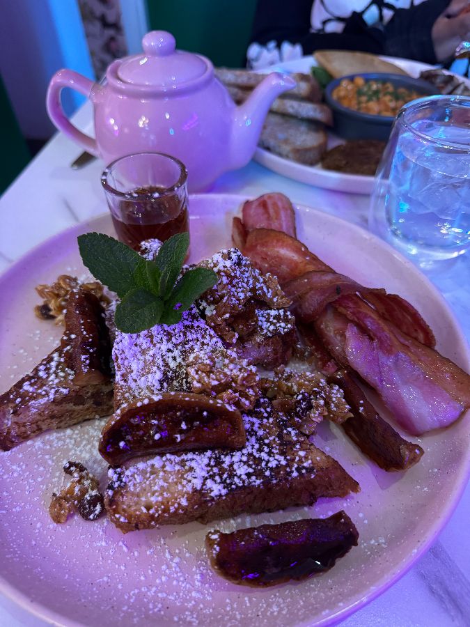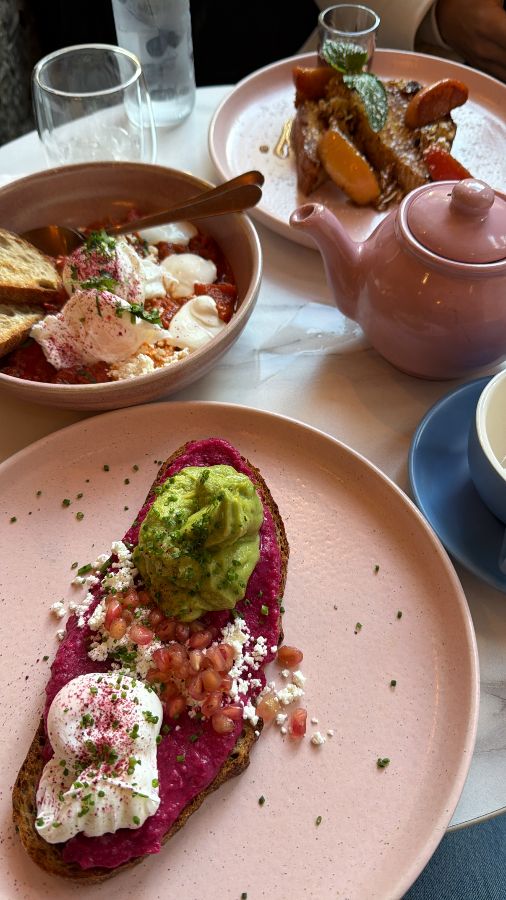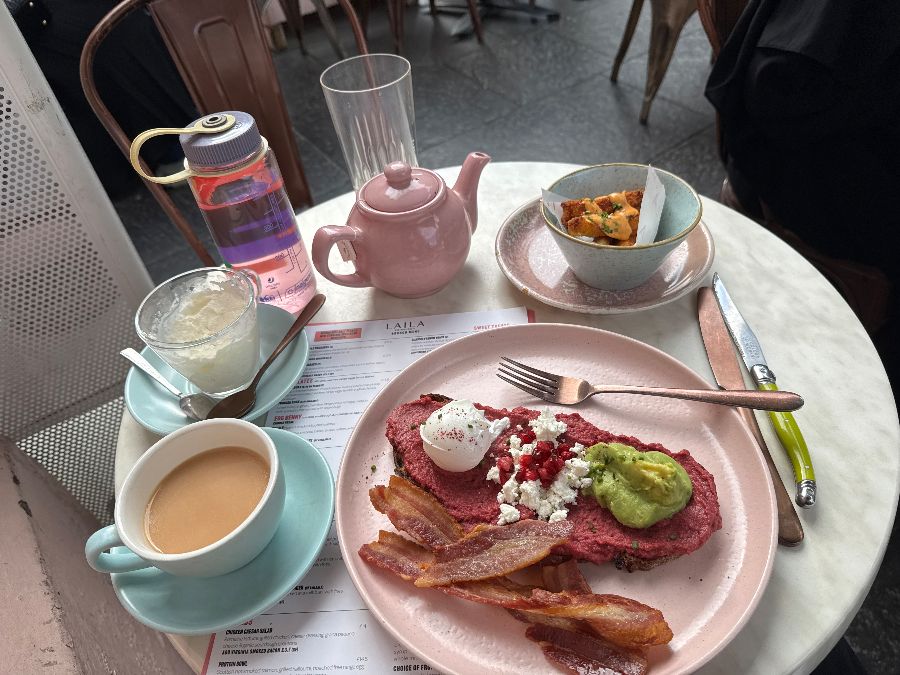 Laila’s는 에든버러를 방문하는 여행객들뿐만 아니라 현지인들에게도 ‘보석 같은 곳’으로 불리며 꾸준히 사랑받고 있습니다. 그 비결은 바로 공간이 주는 특별한 경험에 있습니다. 문을 열고 들어서는 순간, 은은하게 퍼지는 커피 향과 함께 따뜻한 핑크색 인테리어가 방문객을 맞이합니다. 벽면을 채운 감각적인 그림들과 세심하게 배치된 소품들은 이곳이 단순한 식당이 아닌, 하나의 예술 작품임을 보여줍니다. 특히, 핑크색 주전자와 접시 등 식기류까지 통일된 톤앤매너는 사진 찍기 좋은 곳으로도 정평이 나 있습니다. 주말에는 다소 붐빌 수 있지만, 기다림조차 즐거움이 되는 마법 같은 공간입니다. 친절하고 세심한 직원들은 분주한 와중에도 손님 한 명 한 명에게 집중하며, 그들의 미소는 Laila’s의 따뜻한 분위기를 더욱 배가시킵니다.
