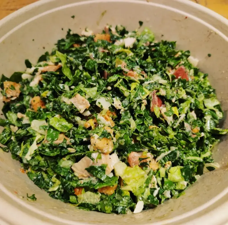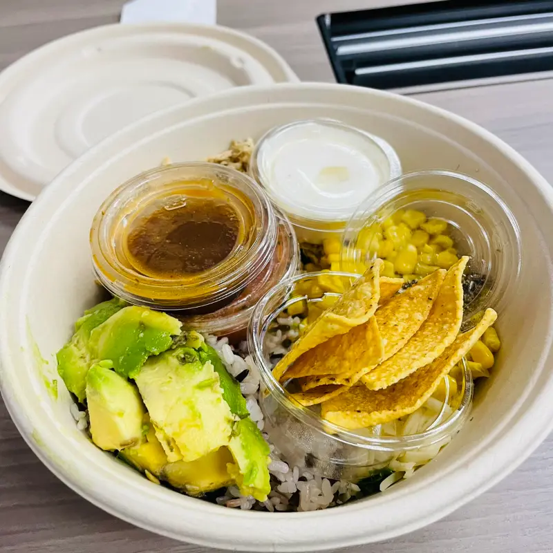 샐러드 종류가 다양해서 고민하다가, 처음으로 CHICKEN TACO BOWL을 주문했습니다. 로메인 양상추, 치킨, 토마토, 실란트로, 아보카도가 조화롭게 어우러진 메뉴입니다. 마치 치킨 타코스를 샐러드로 즐기는 듯한 느낌이었는데요. 신선한 채소와 짭짤한 치킨의 조합이 정말 훌륭했습니다.