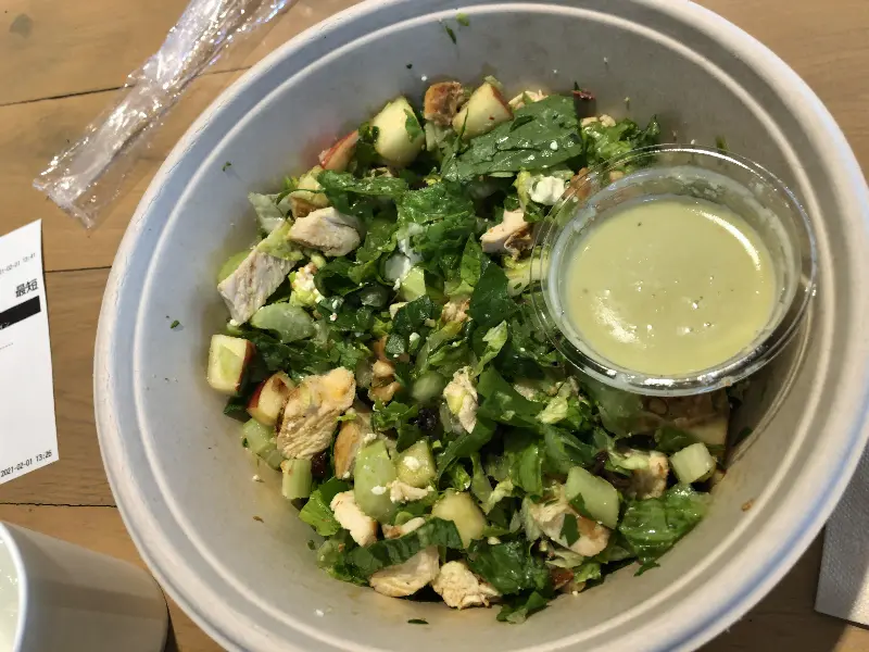 저는 스마트폰으로 미리 주문하고 매장을 방문했습니다. 남성 스태프에게 온라인 주문 내역을 보여주니, “거기 있습니다”라는 다소 딱딱한 답변이 돌아왔습니다. 롯폰기점이나 요코하마점에서 경험했던 친절한 서비스와는 다소 거리가 멀어 아쉬움이 남았습니다. 하지만 맛있는 샐러드를 맛볼 생각에 기분 좋게 발걸음을 옮겼습니다.