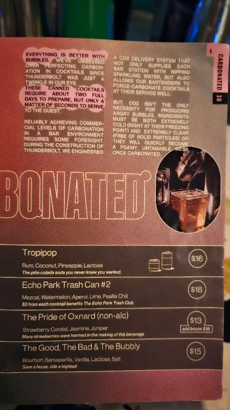 썬더볼트는 다른 주에 사는 친구, LA에 사는 친구, 심지어 가족과 함께 가도 모두가 만족하는 곳입니다. 칵테일은 항상 훌륭하고, 바텐더들은 뛰어난 실력을 자랑합니다. 썬더볼트의 음료는 항상 만족스러운 경험을 선사합니다.