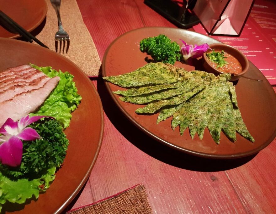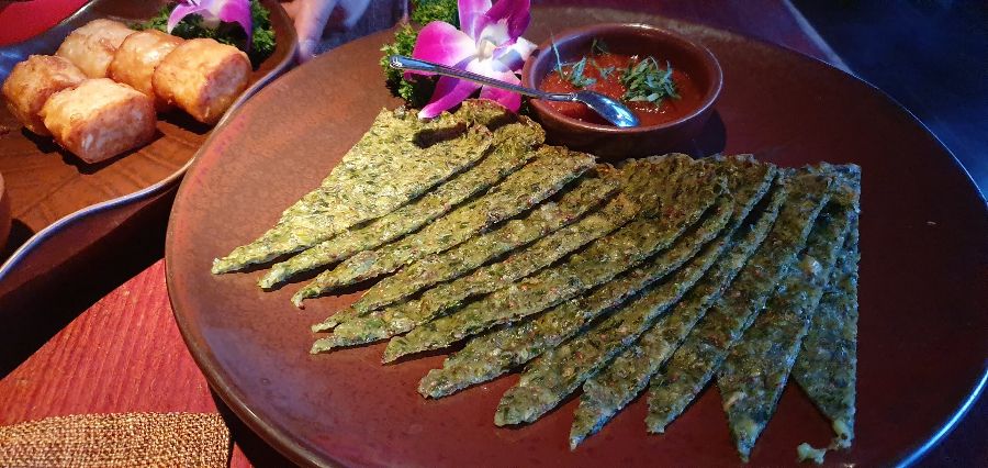 고심 끝에 몇 가지 메뉴를 골랐다. 가장 먼저 눈에 띈 것은 사진 속의 녹색 음식이었다. 독특한 비주얼에 끌려 주문했지만, 사실 큰 기대는 하지 않았다. 하지만 막상 맛을 보니, 예상외로 담백하고 풍미가 좋았다. 향긋한 채소와 은은한 향신료가 어우러져 입안 가득 퍼지는 맛은 정말 훌륭했다.