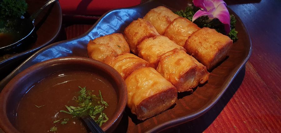 겉은 바삭하고 속은 촉촉한 딤섬도 빼놓을 수 없었다. 딤섬을 따뜻한 소스에 찍어 먹으니, 달콤하면서도 고소한 맛이 입안 가득 퍼졌다. 딤섬의 겉면은 노릇하게 튀겨져 있어 바삭한 식감을 더했고, 속은 촉촉한 육즙으로 가득 차 있어 환상적인 조화를 이루었다.