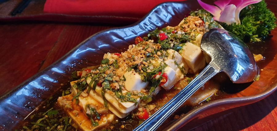 특히 인상적이었던 것은 두부 요리였다. 하얀 두부 위에 매콤한 소스와 다진 견과류가 듬뿍 올려져 있는 모습은 보기만 해도 군침이 돌았다. 부드러운 두부와 매콤한 소스의 조화는 정말 훌륭했다. 젓가락으로 두부를 살짝 집어 입에 넣으니, 부드러운 촉감과 함께 매콤한 소스의 풍미가 입안 가득 퍼졌다. 톡톡 터지는 견과류는 고소한 맛과 함께 씹는 재미를 더했다.