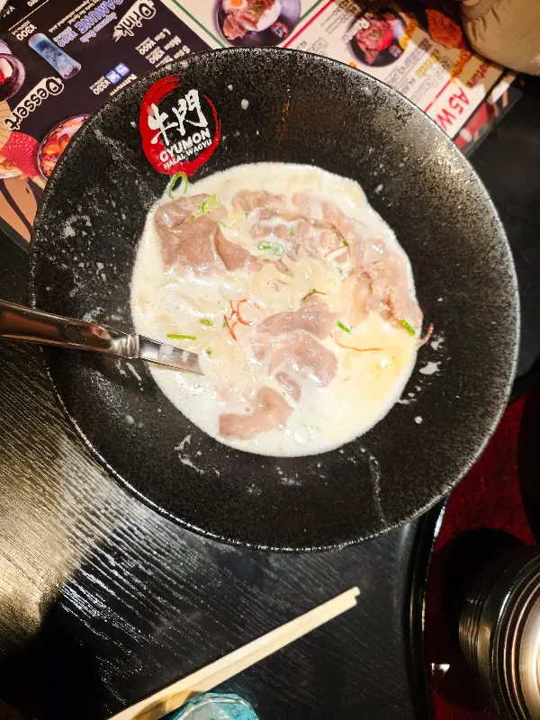직원분의 추천을 받아 주문한 할랄 와규 라멘. 뽀얀 국물 위에 부드러운 와규 차슈가 넉넉하게 올려져 있는 모습은 보는 것만으로도 식욕을 자극했습니다. 젓가락으로 면을 들어 올리자, 진한 육수의 향이 코끝을 간지럽혔습니다. 한 입 맛보는 순간, 입안 가득 퍼지는 깊고 풍부한 맛에 감탄했습니다. 특히, 와규 특유의 고소함과 부드러운 식감은 잊을 수 없는 맛이었습니다.