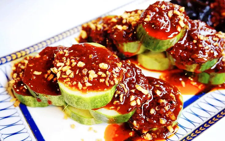 매콤하면서도 시원한 마라오이무침, 톡 쏘는 마라의 향이 매력적이다.