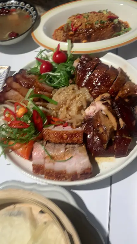 다른 손님들의 리뷰를 보니, 오리구이와 매콤한 새우 완탕도 인기가 많은 것 같았습니다. 특히, 오리구이는 너무 맛있어서 두 번이나 다시 먹으러 왔다는 후기가 인상적이었습니다. 다음 방문 때는 꼭 오리구이와 새우 완탕을 먹어봐야겠다는 다짐을 했습니다. 사진 속 로스트 플래터의 윤기만 봐도 그 맛을 짐작할 수 있었습니다.