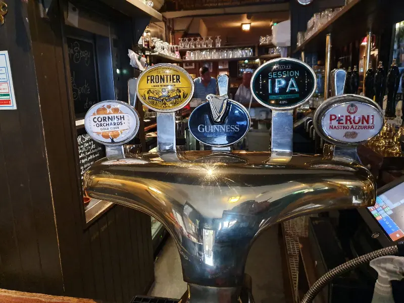 7월 중순 런던은 생각보다 더웠습니다. 에어컨이 없는 펍 내부는 다소 더웠지만, 시원한 맥주 한 잔으로 더위를 잊을 수 있었습니다. 특히, 이곳의 맥주는 정말 훌륭했습니다. 다양한 종류의 맥주를 맛볼 수 있으며, 특히 런던 프라이드 맥주는 꼭 마셔봐야 할 필수 메뉴입니다.