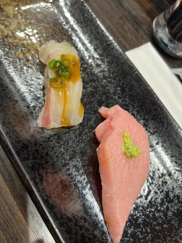 첫 점은 참치. 붉은 빛깔이 선명한 참치 위에 살짝 얹어진 와사비는 맛의 균형을 완벽하게 잡아주었다. 입에 넣는 순간, 사르르 녹아내리는 부드러움과 풍부한 감칠맛은 잊을 수 없는 경험이었다. 50년 장인의 손길이 느껴지는 섬세한 칼질 덕분에, 참치의 풍미는 더욱 깊고 진하게 느껴졌다.