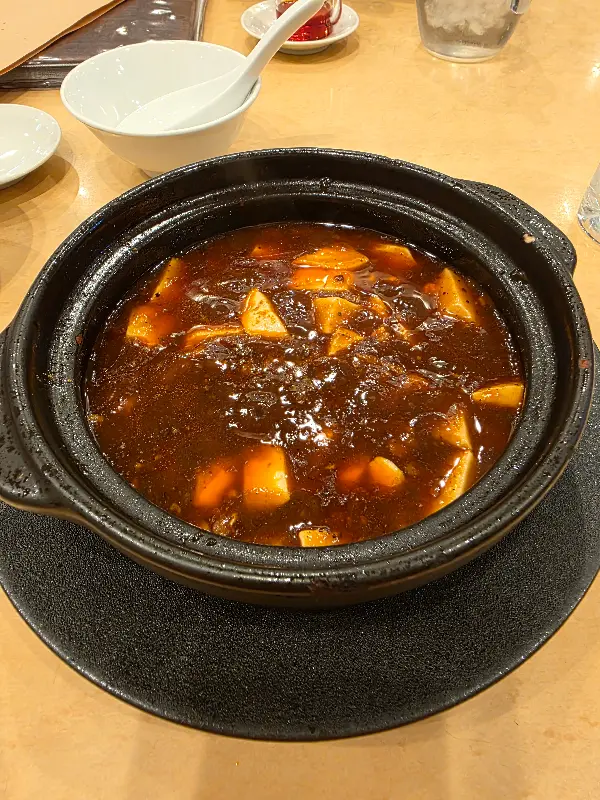 매콤하면서도 깊은 맛이 일품인 마파두부, 밥과 함께 즐기면 든든한 한 끼 식사 완성.