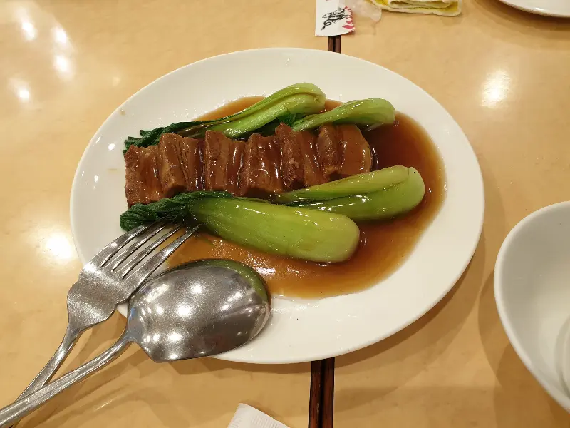 윤기가 자르르 흐르는 돼지고기 조림, 부드러운 식감과 풍부한 맛이 돋보입니다.
