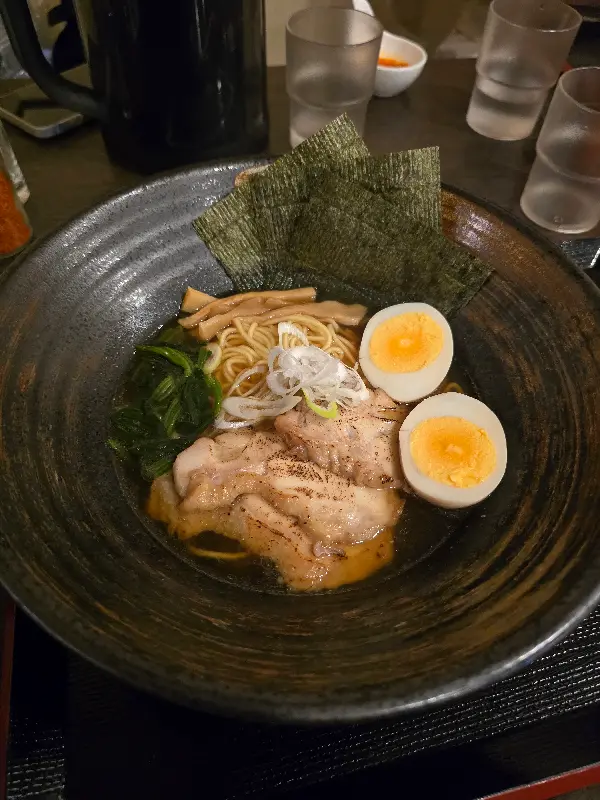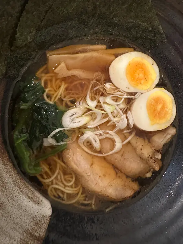국물부터 한 입 맛보니, 매콤하면서도 깊은 맛이 느껴졌습니다. 닭 육수를 베이스로 했다는데, 느끼함 없이 깔끔하고 담백했습니다. 면은 쫄깃했고, 토핑으로 올라간 고기와 야채는 신선했습니다. 특히 반숙 계란은 촉촉하고 고소해서 라멘의 풍미를 더했습니다. 쉴 새 없이 젓가락을 움직이며 라멘을 맛보았습니다.