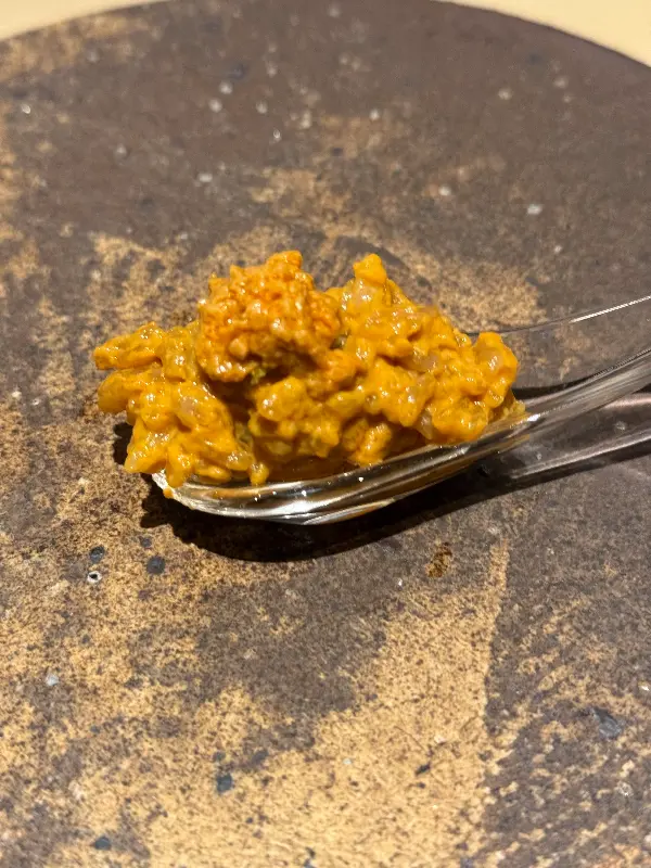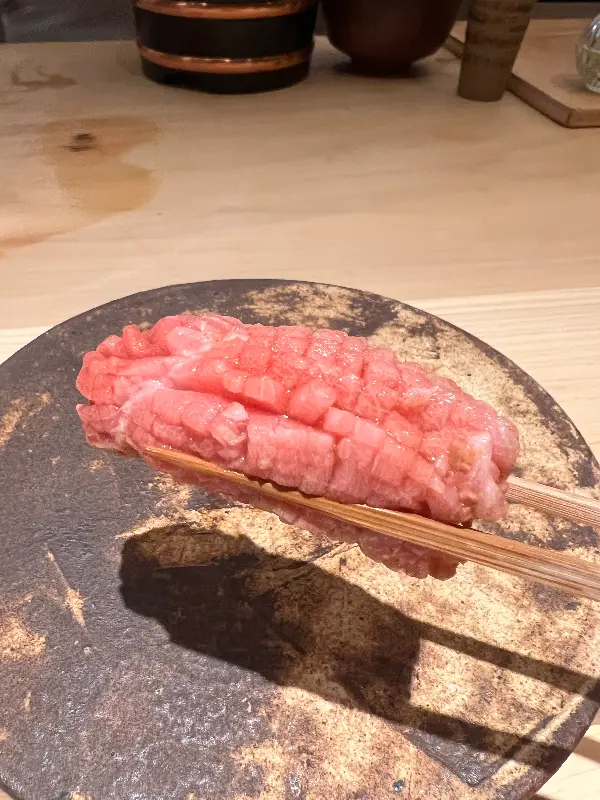 이어서 등장한 참치 요리는 눈으로 먼저 즐거움을 선사했다. 붉은 빛깔의 참치와 초록색 소스의 조화는 마치 예술 작품을 연상시켰다. 입에 넣는 순간, 부드러운 식감과 풍부한 맛이 환상적인 조화를 이루었다. 특히, 간장에 절인 참치는 잊을 수 없는 맛이었다.