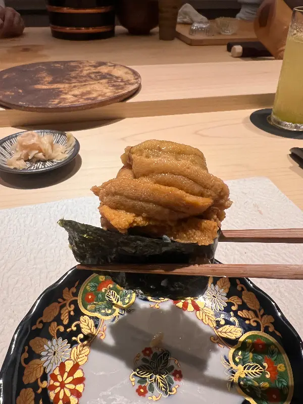오마카세는 계속 이어졌다. 셰프는 능숙한 솜씨로 스시를 쥐어 나에게 건네주었다. 초토로, 오토로, 전복 등 고급 식재료를 아낌없이 사용한 스시는 입 안에서 사르르 녹아내렸다. 특히 전복 내장 소스는 고소하면서도 깊은 풍미를 자랑했다. 오징어 스시는 쫄깃한 식감과 신선함이 놀라웠다.