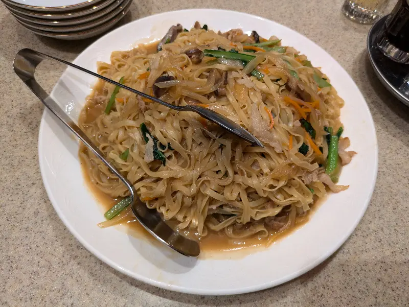 점심시간에 방문했기에 런치 메뉴를 살펴보았다. 런치 정식은 1,300엔부터 시작하는 합리적인 가격으로, 밥과 죽을 선택할 수 있다는 점이 매력적이었다. 메뉴판을 가득 채운 다채로운 요리들은, 보는 것만으로도 군침이 돌게 했다. 새우 칠리 대신 새우 감초 조림을 선택할 수 있다는 점도 특별했다.