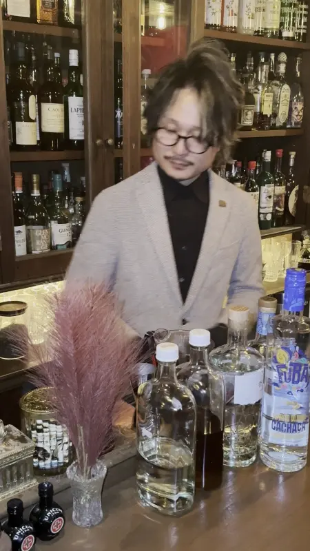 문을 열자 예상보다 아늑하고 따뜻한 분위기가 나를 맞이했다. 은은한 조명 아래, 나무로 된 바 테이블과 가죽 의자가 편안함을 더하고, 벽면을 가득 채운 술병들이 이곳의 역사를 말해주는 듯했다. 바텐더는 따뜻한 미소로 나를 맞이하며, 마치 오래된 친구를 만난 것처럼 편안하게 대해 주었다. 외국인 손님들이 많았지만, 한국인은 드물어 더욱 특별한 느낌이 들었다. 80%가 외국인, 20% 정도가 일본인 손님인 듯했다.