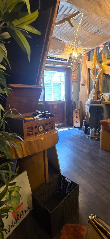 카페 내부는 마치 미국 서부 영화 세트장에 온 듯한 착각을 불러일으켰습니다. 나무로 만들어진 테이블과 의자, 벽면에 걸린 카우보이 모자와 부츠 장식들은 컨트리 음악 선율과 어우러져 독특하고 편안한 분위기를 자아냅니다. 낡은 턴테이블에서는 잔잔한 음악이 흘러나오고, 은은한 조명은 공간을 더욱 아늑하게 만들어 줍니다. 마치 오랜 시간 동안 그 자리를 지켜온 듯한 편안함이 느껴졌습니다.