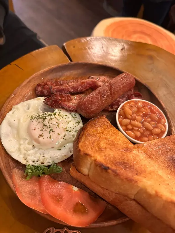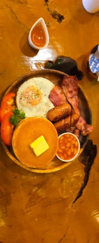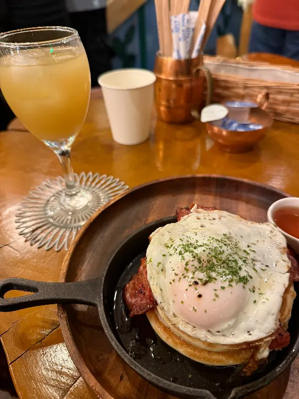 모든 재료가 신선하고 정성스럽게 준비된 것이 느껴졌습니다. 특히 핫케이크는 부드럽고 촉촉했으며, 베이컨과 소시지는 짭짤하면서도 고소한 풍미가 일품이었습니다. 계란 프라이는 반숙으로 제공되어 핫케이크와 함께 먹으니 더욱 부드럽고 고소했습니다.