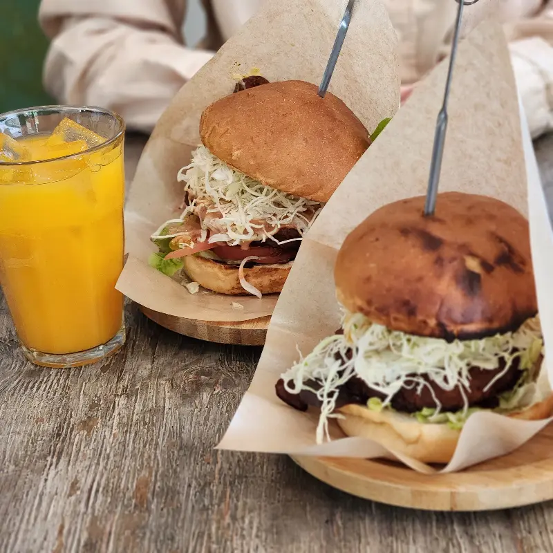 수많은 메뉴 앞에서 고민하다가, 나는 비건 비욘드미트 버거를 선택했다. 평소 채식 버거에 대한 큰 기대가 없었는데, 이곳의 버거는 달랐다. 빵은 겉은 바삭하고 속은 촉촉했고, 비욘드 미트는 육즙이 가득했다. 신선한 채소와 소스의 조화는 환상적이었다.